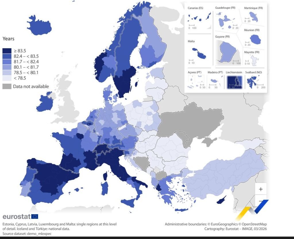 The data, from the EU’s statistics agency Eurostat data on mortality and life expectanc, show life expectancy recovering from the pandemic and reaching values higher than in 2019 (81.3 years).
